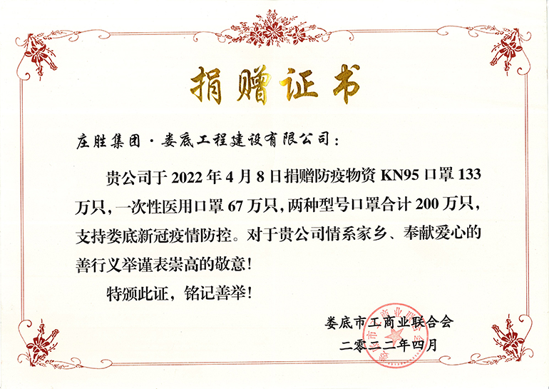 莊勝集團·婁底工程建設有限公司向婁底市捐贈200萬只防疫口罩